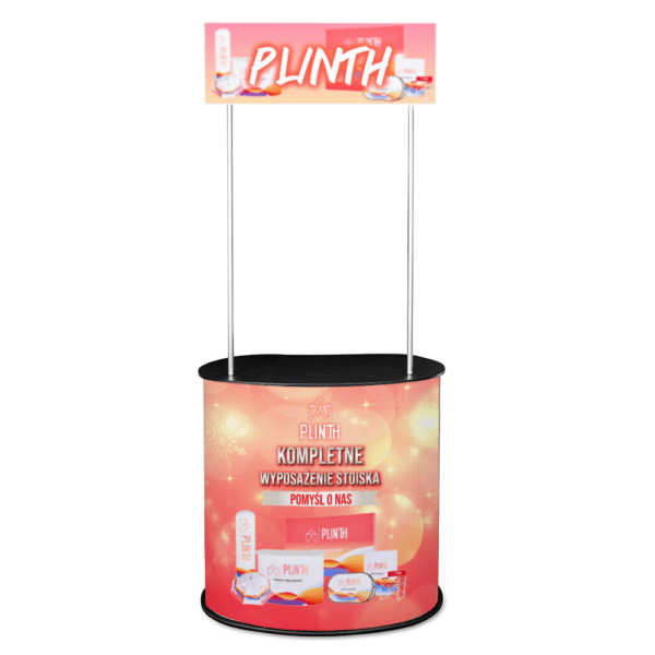 Trybunka reklamowa okrągła – elegancka lada promocyjna o lekkiej i stabilnej konstrukcji. Szybki montaż na rzepy, trwały nadruk na folii samoprzylepnej. Idealna na targi i eventy!